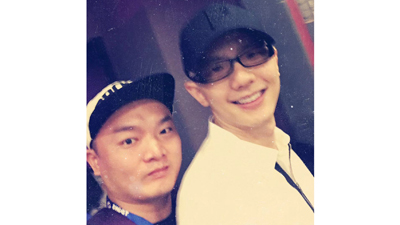 校长林羽龙与歌手平安合影