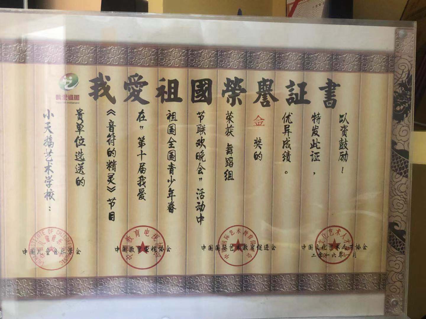 2017我爱祖国荣誉证书金奖