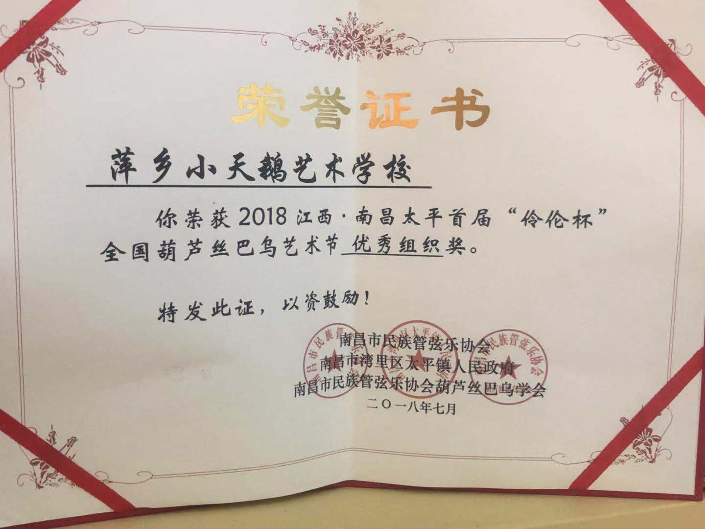 葫芦丝巴乌艺术节优秀组织奖
